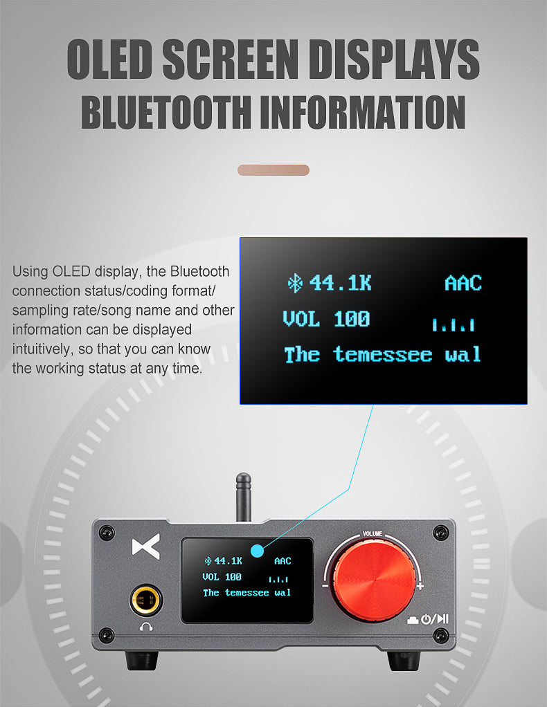 - ◆With OLED display, real-time display of song name, sampling rate, Bluetooth format, etc.