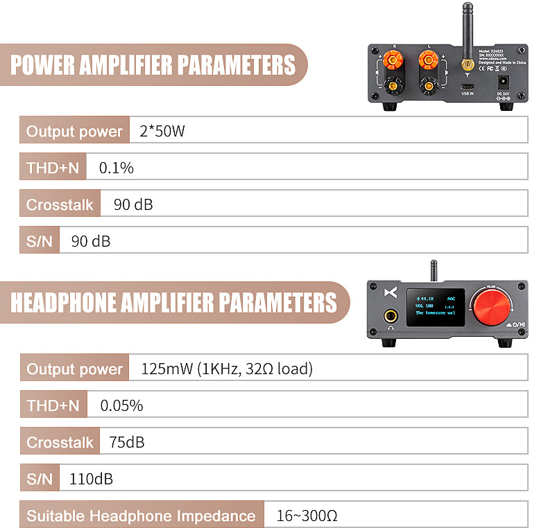 - Using TI TPA3116 amplifier chip, excellent sound quality, the maximum output power can reach 50W per channel, easy to drive bookshelf speaker. It also adopts the high-performance ES9018K2M DAC chip and high-fidelity operational amplifier chip MAX97220, which can ensure high S/N and very low distortion with excellent performance parameters. This chipset eliminates noise interference and provides the users with a powerful high-resolution output.