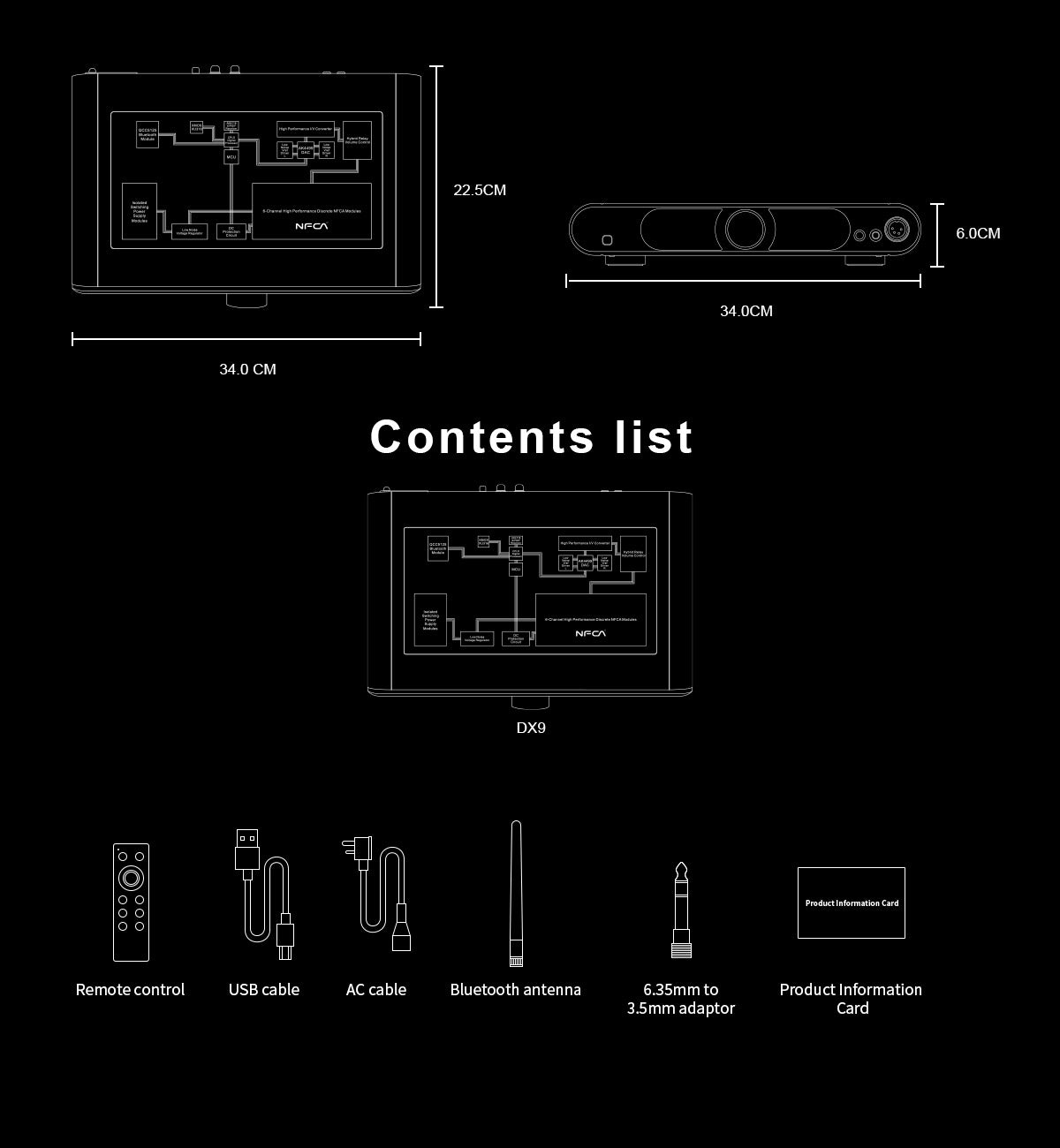 - The DX9's six-channel discrete NFCA headphone amplifier module delivers a powerful 7000mW per channel with distortion under 0.00009%, making it adept at driving even the most demanding headphones. The independent power supplies for the DAC and amplifier circuits ensure a pristine, interference-free sound.