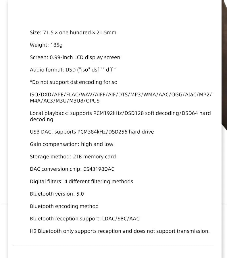 - DSD (Direct Stream Digital):Yes